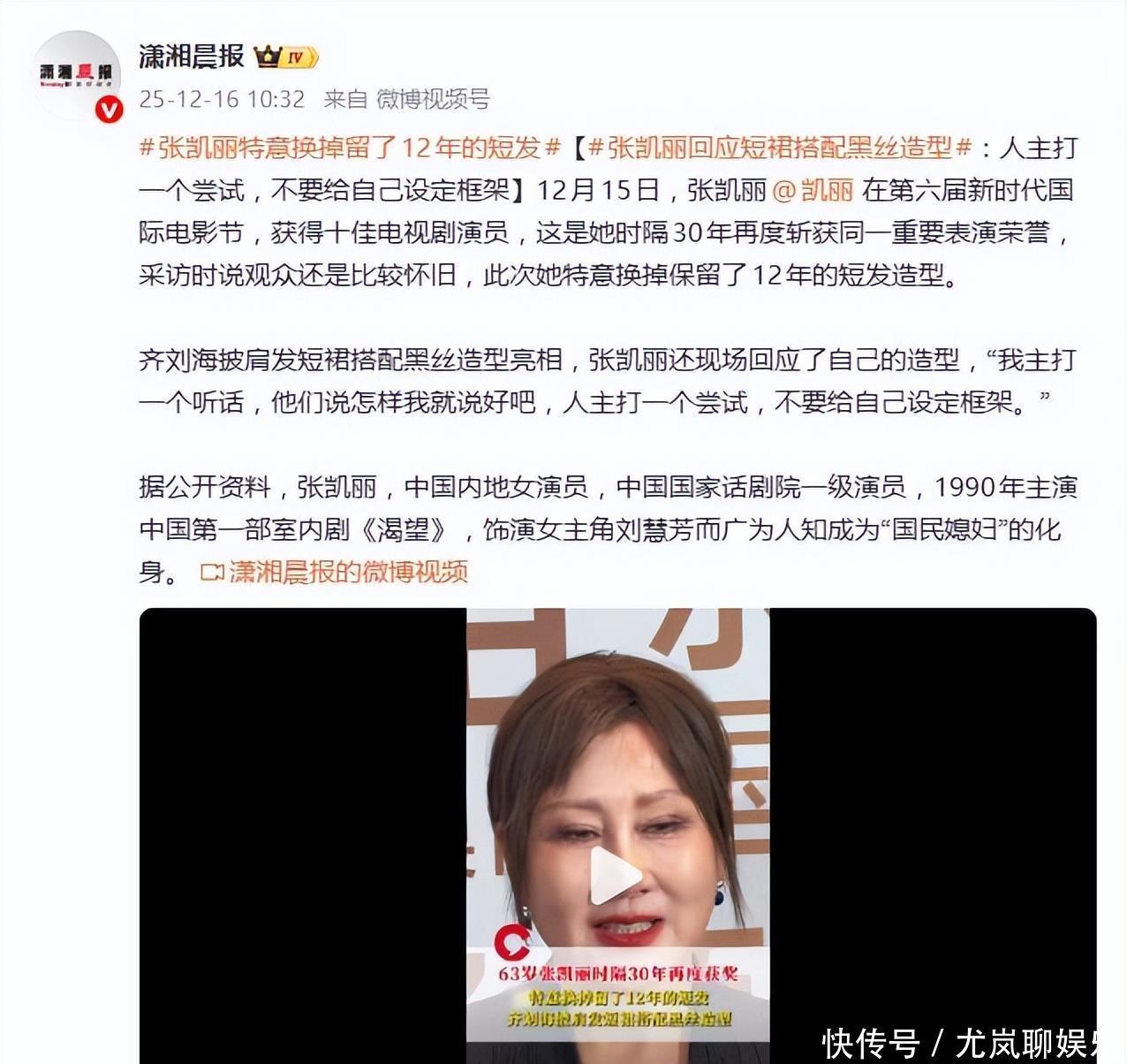 对此,张凯丽早已干净利落地澄清:代言结束已五年,请谨慎辨别。而她“丝袜也一直有穿”的补充,更像是一种对个人生活方式的淡然捍卫。从《渴望》的刘慧芳到如今打破框架的张凯丽,她的职业生涯仿佛一个隐喻:演员可以不被一个角色定型,女性更不应被一个数字年龄绑架。这场由一岁女演员造型引发的热议,早已超越了对穿着本身的品头论足。它更像是一面镜子,照出了社会对“中老年女性该如何”的顽固预设,与个体追求自我表达之间的激烈碰撞。张凯丽用一次大胆的尝试,不仅更新了自己的形象,更向所有人抛出了一个命题:所谓的“得体”框架,到底是谁设定的?又有多少人,在默默接受这些无形框架的束缚?当“国民妈妈”开始“叛逆”,她挑战的或许不只是观众的怀旧眼光,更是那套约定俗成的、关于年龄与可能性的隐形剧本。这场小小的“形象革命”提醒我们:人生没有标准模板,敢于尝试、不被设限的勇气,本身或许就是最永葆青春的“冻龄秘诀”。